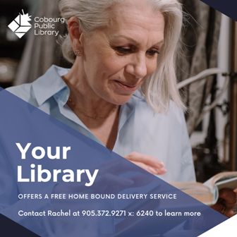 Our Home Bound Delivery Service is for Cobourg, Bewdley and Gores Landing residents who cannot make it into the Library due to: